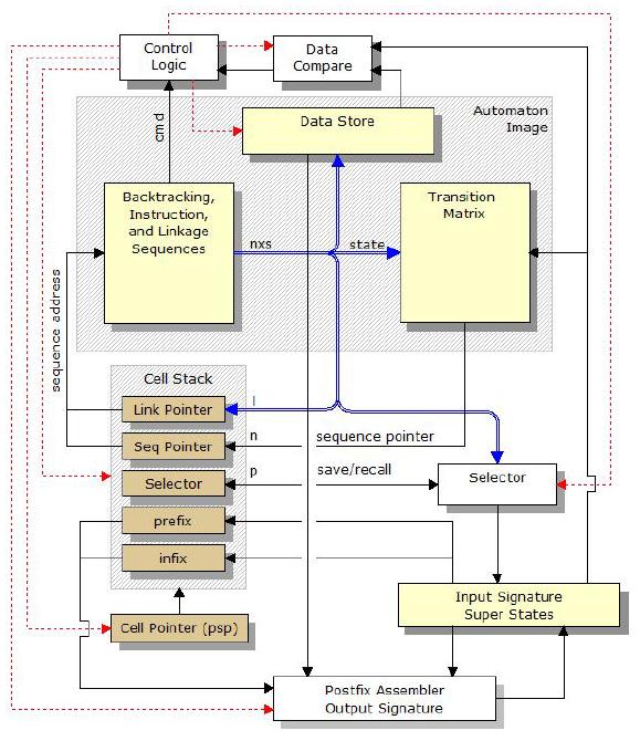 - Adaptive process/language automaton. As part of the compilations, all possible backtracking sequences are pre-computed and merged with application specific operations. Executable as a DLL or for greater performance via a hardware implementation.